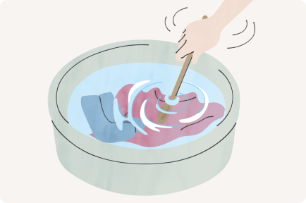 衣服をしっかり漬け、30分~2時間ほどつけおきする。