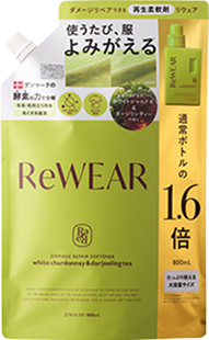 ReWEAR(リウェア)「再生柔軟剤 クラシックローズ&ムスク/フレッシュシトラス&グリーン」は、日本経済新聞社「2025年日経MJヒット商品番付」に選出されるなど大変ご好評いただいています。オンラインチャネルでの販売好調も後押しし、計画販売比は2.3倍*4となり、累計販売数は100万個を突破*1しました。 「ホワイトシャルドネ&ダージリンティー」は発売からわずか4日で楽天市場で完売*5するなど多くの支持を集め、この度定番化が決定しました。爽やかで多幸感あふれるフレグランスをお楽しみください。
